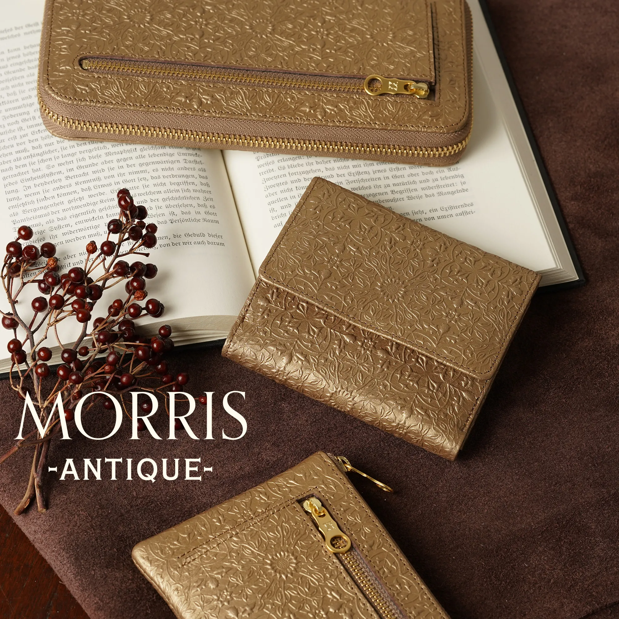 HIRAMEKI.は、アンティークなテイストのお財布やバッグなどを展開するレザーブランド。