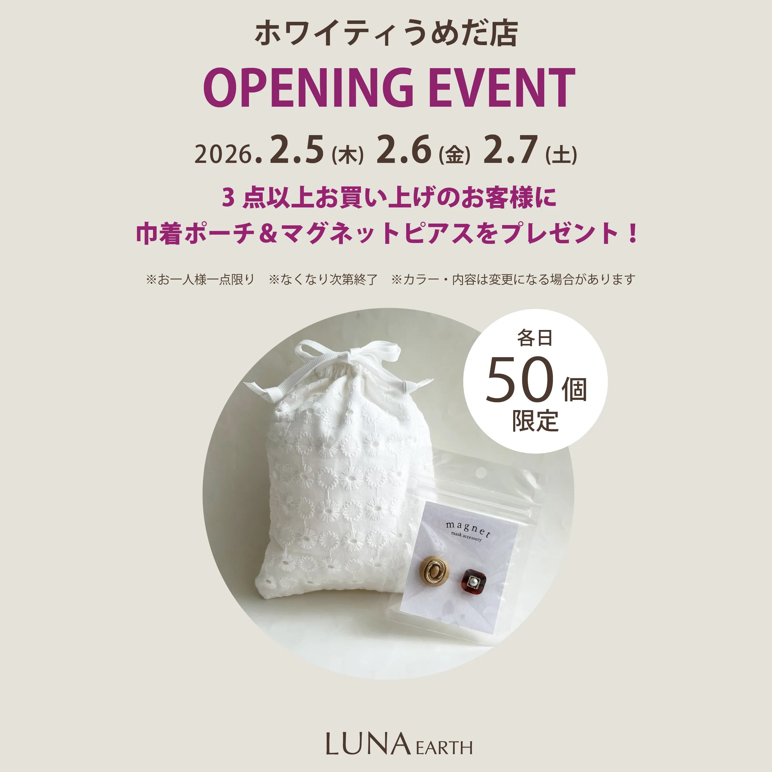 オープン日より3日間・各日先着50名様限定と